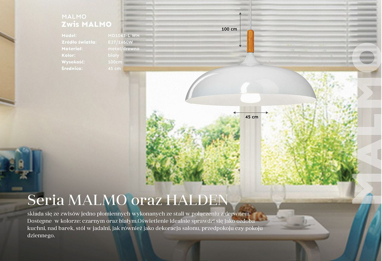 Lampa wisząca MALMO w kolorze białym wprowadzi do Twoich wnętrz nutę doskonałego, najnowocześniejszego designu. Lampa doskonale wkomponuje się w pomieszczeniu typu loft nad długim stołem lub barkiem. Produkt występuje również w kolorze czarnym.