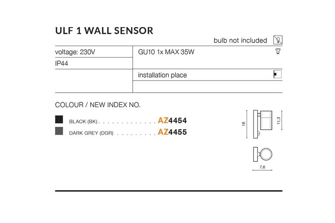 KINKIET ZEWNĘTRZNY ULF 1 SENSOR IP44 CIEMNY SZARY AZ4455