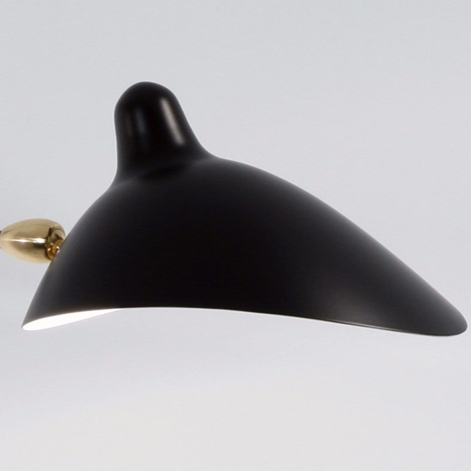Kinkiet CRANE-1W ma biały środek kloszy i detale w kolorze mosiądzu.