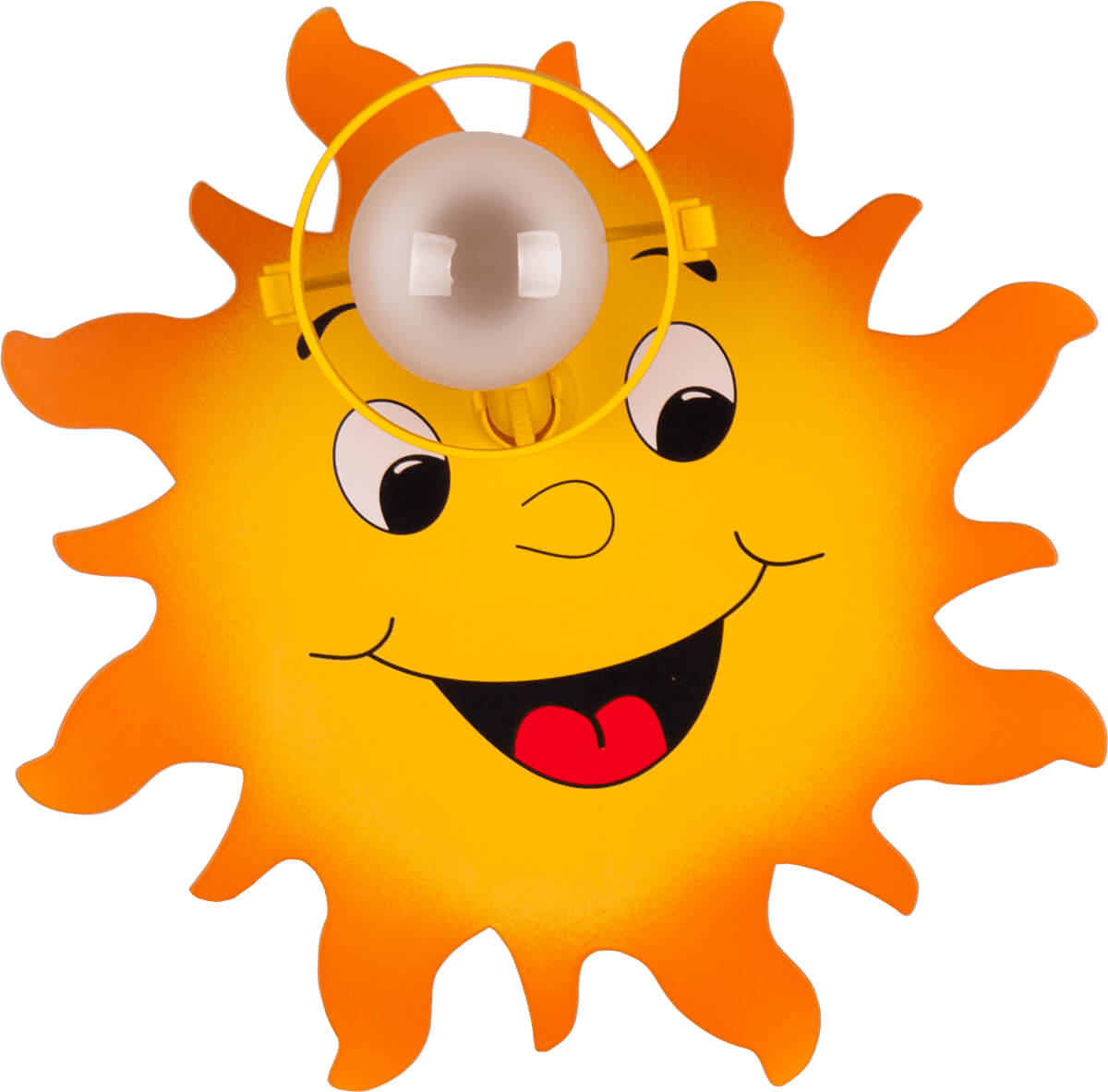 - Kinkiet w kształcie radosnego słoneczka, wykonany z najwyższej jakości materiałów, malowany sitodrukiem. Jego forma i kolorystyka sprawiają, ze świetnie prezentuje się w pokoju dziecięcym. Idealny jako dodatkowe oświetlenie w pokoju Twojego dziecka. Możliwość regulacji światła.