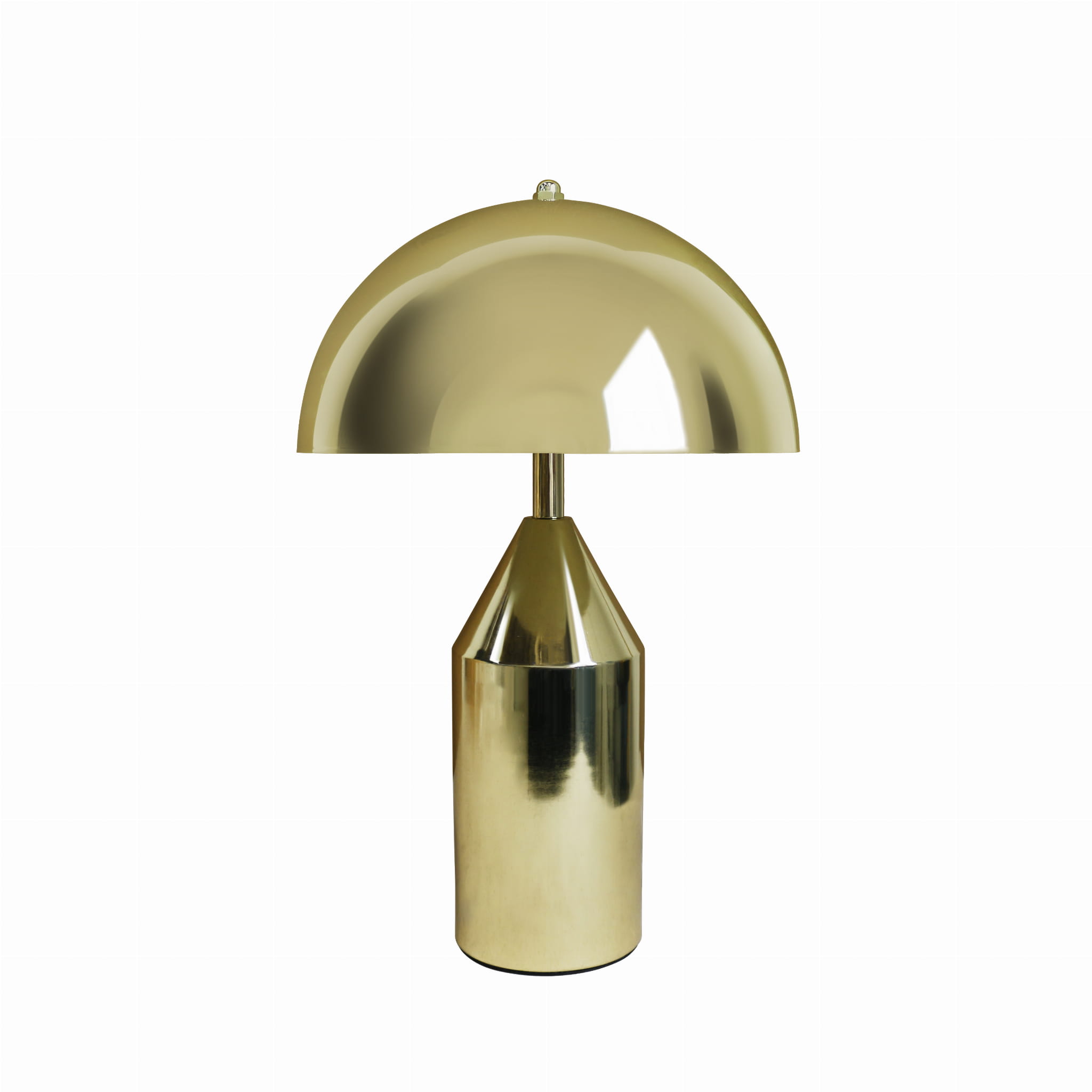 Pełna elegancji lampa biurkowa z podstawą wzorowaną na butelce wina. Klosz lśniąco złoty z białym wypełnieniem. Źródło światła 2 x E27 którego światło skierowane jest do dołu. Nadaje się idealnie jako dopełnienie wystroju salonu lub sypialni. Dostępna wersja matowo czarna.